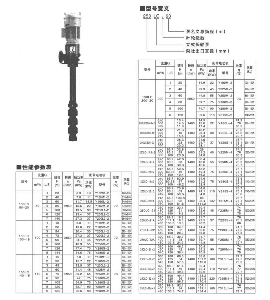 | LC型系列立式長(zhǎng)軸泵,采用浸沒式葉輪.立式安裝,具有結(jié)構(gòu)緊湊,工作平穩(wěn),操作簡(jiǎn)便,通用化程度高等優(yōu)點(diǎn)。 主要用途 ?用于輸送清水、污水、具有腐蝕性工業(yè)廢水或相似的液體。 ?工農(nóng)業(yè)給水及城市工廠污水的排放。性能范圍 ?轉(zhuǎn)速:590r/min一2950r/min ?出口直徑:100-1000mm ?流量:30-9400m'/h ?揚(yáng)程:9.7-80.4m ?功率:4-2000kw |